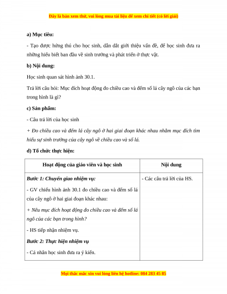 - GV chiếu hình ảnh 30.1 đo chiều cao và đếm số lá