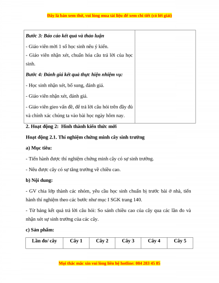 - Tiến hành được thí nghiệm chứng minh cây có sự sinh trưởng.