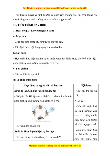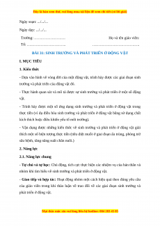 Giáo án Sinh học 7 Cánh diều Bài 31. Sinh trưởng và phát triển ở động vật