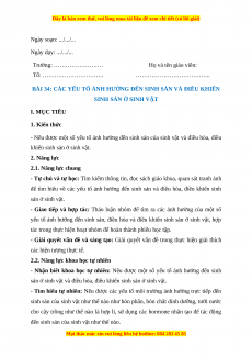 - Nhận biết khoa học tự nhiên: Nêu được một số yếu tố ảnh hưởng đến sinh