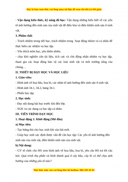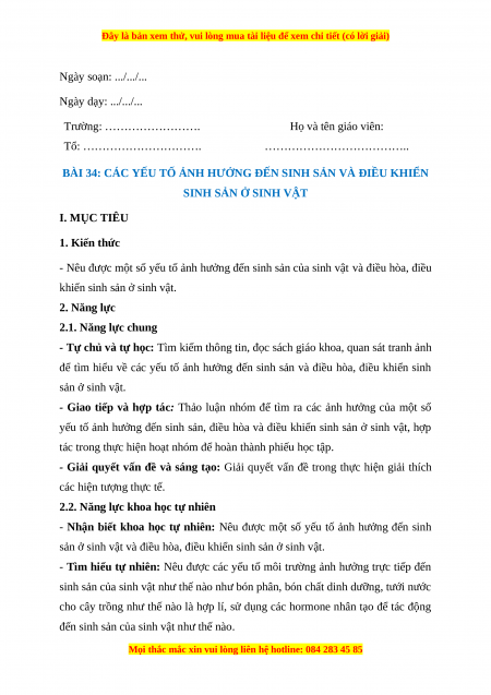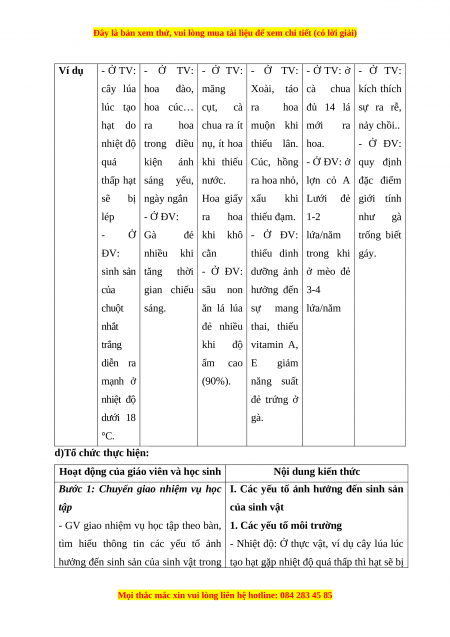 Giáo án Sinh học 7 Cánh diều Bài 34. Các yếu tố ảnh hưởng đến sinh sản và điều khiển sinh sản ở sinh vật