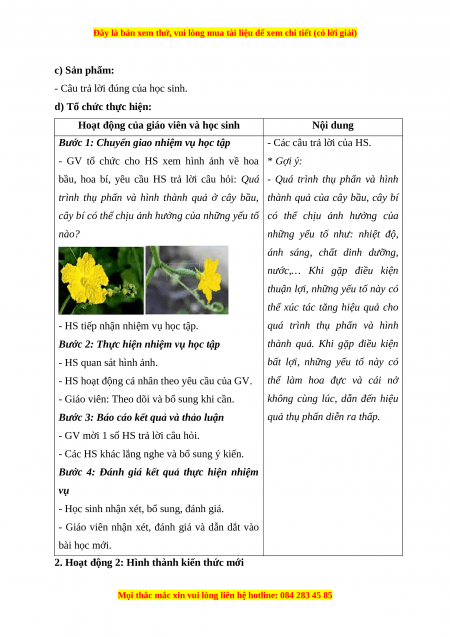 - GV tổ chức cho HS xem hình ảnh về hoa bầu, hoa bí, yêu cầu HS trả lời câu