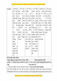 - Tìm hiểu tự nhiên: Nêu được các yếu tố môi trường ảnh hưởng trực tiếp đến