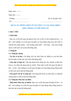 Giáo án Sinh học 7 Cánh diều Bài 35. Sự thống nhất về cấu trúc và các hoạt động sống trong cơ thể sinh vật