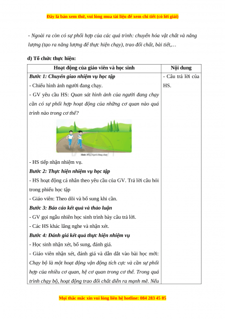 Người đang chạy cần có sự hoạt động phối hợp của: hệ vận động (cơ,