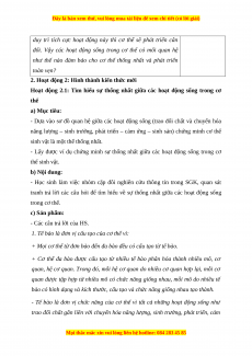 Hoạt động 2.1: Tìm hiểu sự thống nhất giữa các hoạt động sống trong cơ thể a) Mục tiêu:
