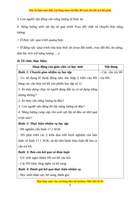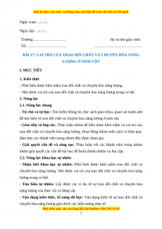BÀI 17: VAI TRÒ CỦA TRAO ĐỔI CHẤT VÀ CHUYỂN HÓA NĂNG