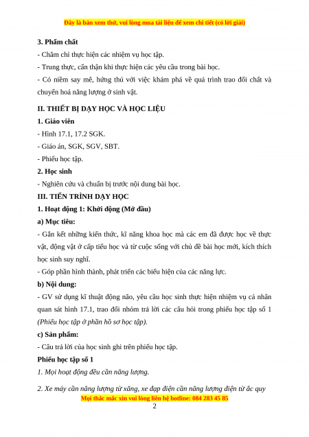 II. THIẾT BỊ DẠY HỌC VÀ HỌC LIỆU 1. Giáo viên - Hình 17.1, 17.2 SGK. - Giáo án, SGK, SGV, SBT. - Phiếu học tập. 2. Học sinh