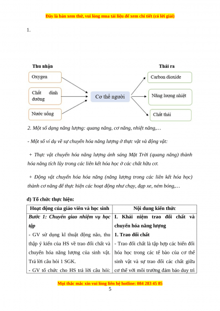 - Nêu được khái niệm trao đổi chất và chuyển hóa năng lượng.