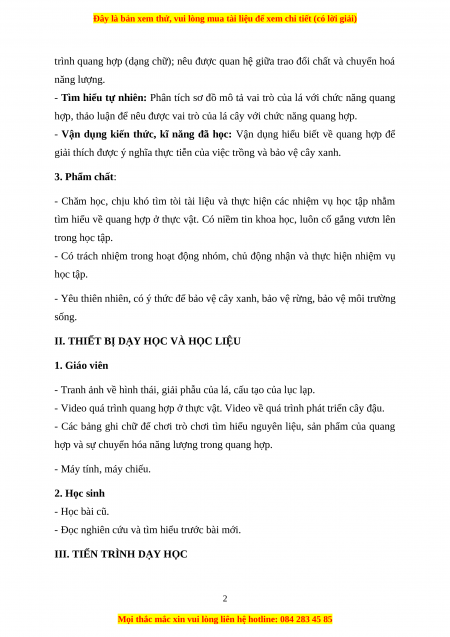 II. THIẾT BỊ DẠY HỌC VÀ HỌC LIỆU