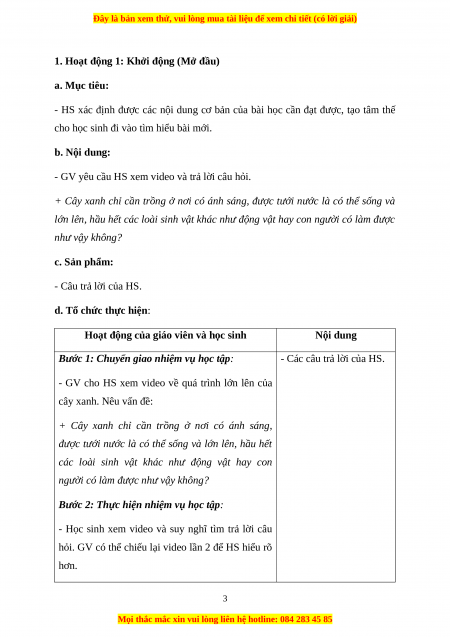 - GV cho HS xem video về quá trình lớn lên của cây xanh. Nêu vấn đề: