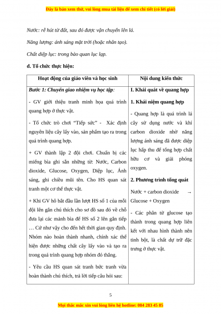 - Viết được phương trình tổng quát về quang hợp. b. Nội dung: