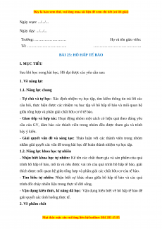 - Giúp học sinh xác định được vấn đề cần học tập: hô hấp tế bào.