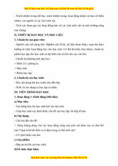 hướng tổ chức hoạt động học cho học sinh. Có thể dự kiến chia nhóm, chuẩn bị