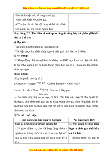 đã học ở bài quang hợp để hoàn thành phiếu học tập số 2 (Phiếu học tập ở phần