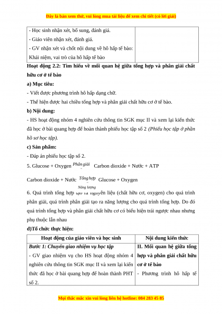 - Nêu được vai trò của quá trình hô hấp tế bào.
