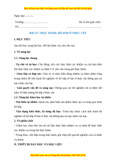 BÀI 27: THỰC HÀNH: HÔ HẤP Ở THỰC VẬT I. MỤC TIÊU
