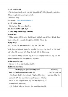 - GV hướng dẫn HS tiến hành thí nghiệm theo các bước SGK, quan sát, nhận