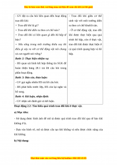 - GV đặt ra câu hỏi liên quan đến hoạt động