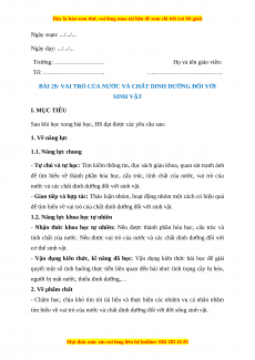 Giáo án Sinh học 7 Kết nối tri thức Bài 29: Vai trò của nước và chất dinh dưỡng đối với sinh vật