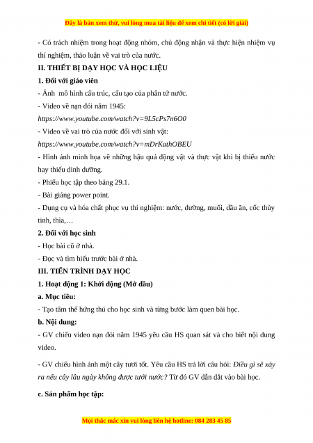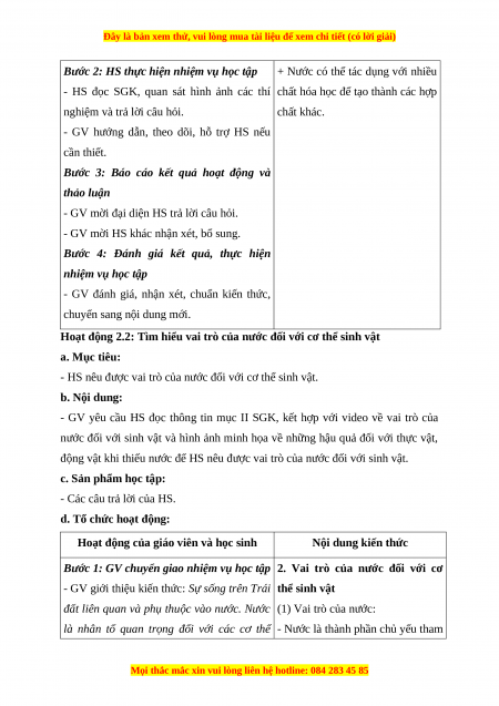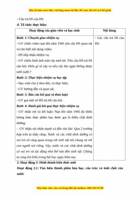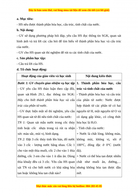 - HS nêu được thành phần hóa học, cấu trúc, tính chất của nước. b. Nội dung: