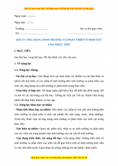 BÀI 37: ỨNG DỤNG SINH TRƯỞNG VÀ PHÁT TRIỂN Ở SINH VẬT VÀO THỰC TIỄN I. MỤC TIÊU