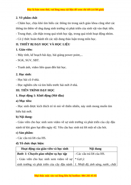 - Giáo viên cho học sinh xem video về sự sinh trưởng và phát triển của cây đậu