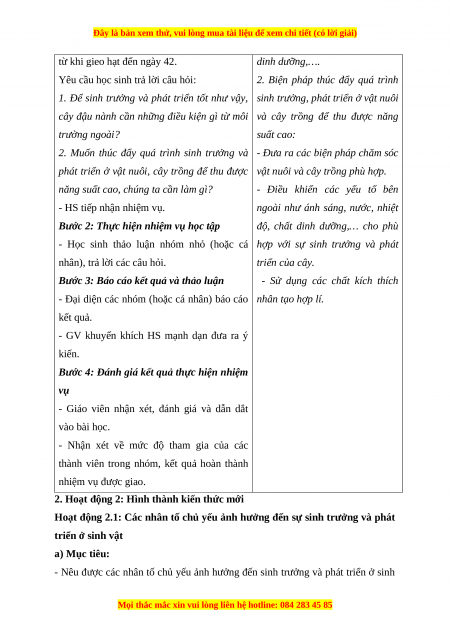 Hoạt động 2.1: Các nhân tố chủ yếu ảnh hưởng đến sự sinh trưởng và phát triển ở sinh vật a) Mục tiêu: