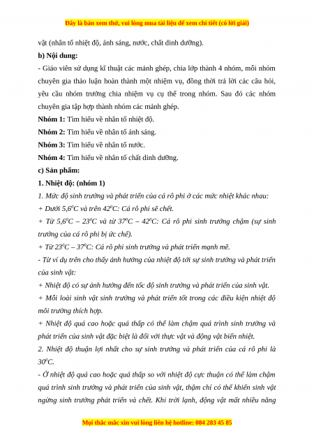 - Học sinh thảo luận nhóm nhỏ (hoặc cá hợp với sự sinh trưởng và phát