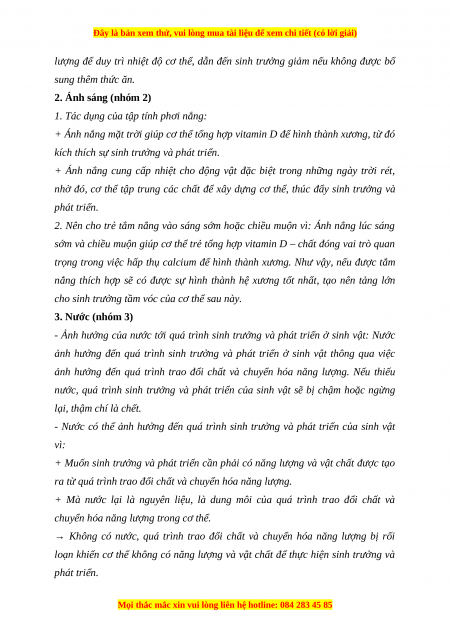 1. Để sinh trưởng và phát triển tốt như vậy,