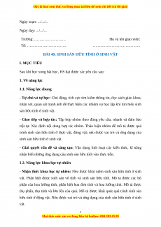 Giáo án Sinh học 7 Kết nối tri thức Bài 40: Sinh sản hữu tính ở sinh vật