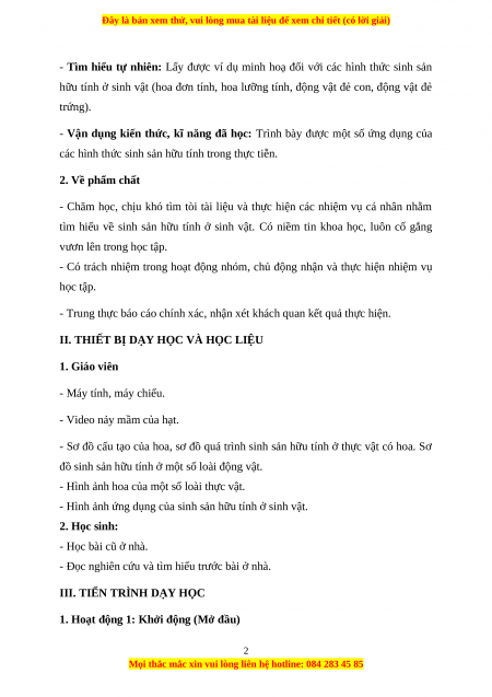 - Nhận thức khoa học tự nhiên: Nêu được khái niệm sinh sản hữu tính ở sinh