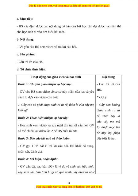 - GV yêu cầu HS xem video và trả lời câu hỏi. c. Sản phẩm: - Câu trả lời của HS.