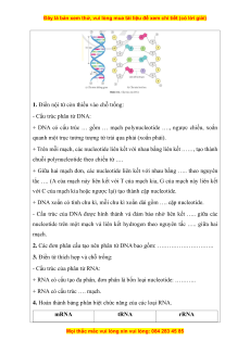 1. Điền nội từ còn thiếu vào chỗ trống: - Cấu trúc phân tử DNA: