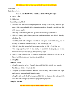 BÀI 21. SINH TRƯỞNG VÀ PHÁT TRIỂN Ở ĐỘNG VẬT I. MỤC TIÊU 1. Kiến thức Sau bài học này, HS sẽ:
