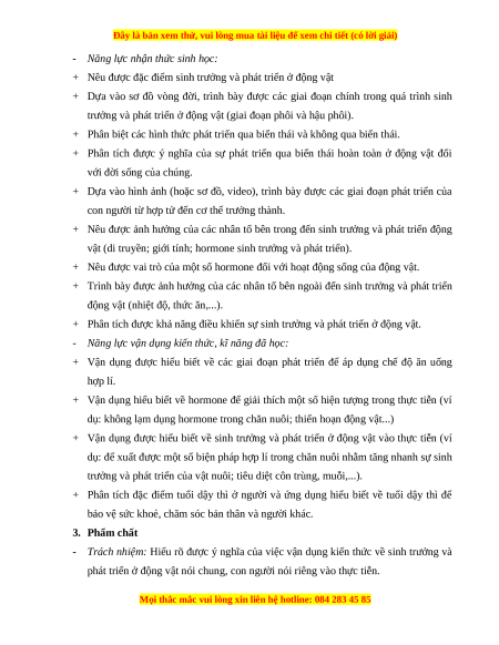 + Vận dụng được hiểu biết về sinh trưởng và phát triển ở động vật vào thực tiễn (ví