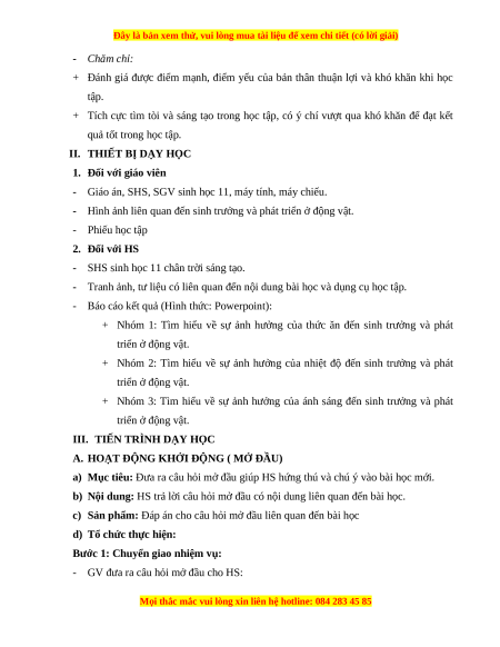 Bộ giáo án Sinh học 11 Chân trời sáng tạo đã cập nhật đủ Cả năm.