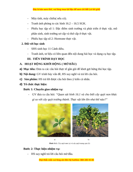 Giáo án Sinh trưởng và phát triển ở thực vật Sinh học 11 Cánh diều