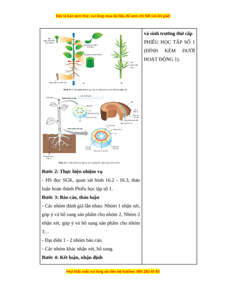- Trình bày được quá trình sinh trưởng sơ cấp và sinh trưởng thứ cấp ở thực vật.