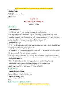 CHỦ ĐỀ 2: CÁC SỐ ĐẾN 10 SỐ 0 ( 1 TIẾT ) I. MỤC TIÊU 1. Năng lực chung: