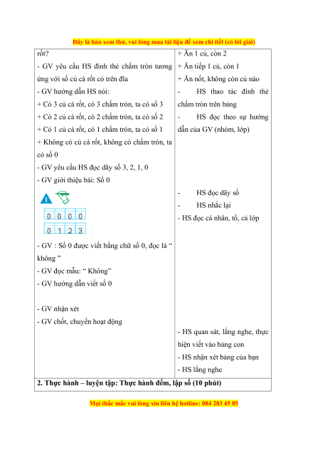 - GV : Số 0 được viết bằng chữ số 0, đọc là “ không ”