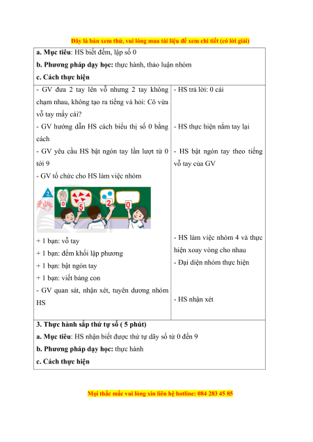 : HS biết đếm, lập số 0