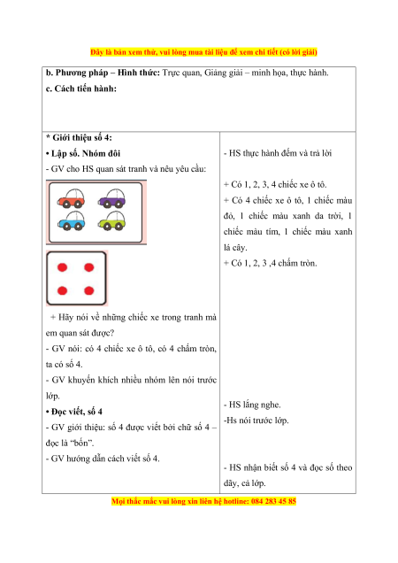 - GV nói: có 4 chiếc xe ô tô, có 4 chấm tròn, ta có số 4.