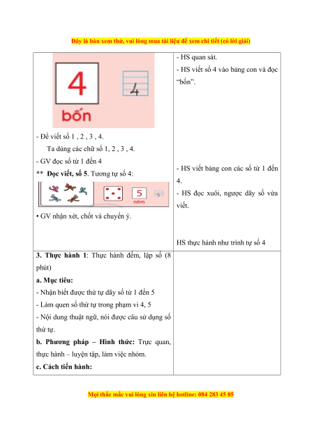 3. Thực hành 1: Thực hành đếm, lập số (8 phút) a. Mục tiêu:
