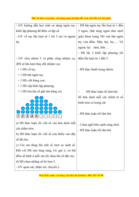 Đây là bản xem thử, vui lòng mua tài liệu để xem chi tiết (có lời giải) 1. Giáo viên: + 5 khối lập phương