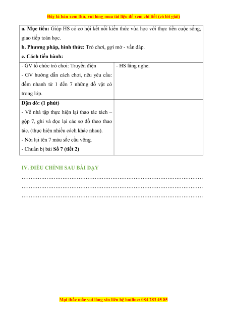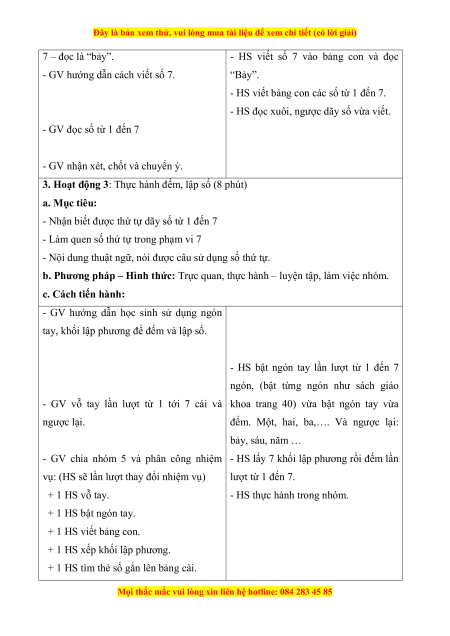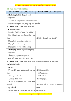 - HS nhận biết số 7 và đọc số theo dãy, • Đọc viết, số 7 cả lớp.