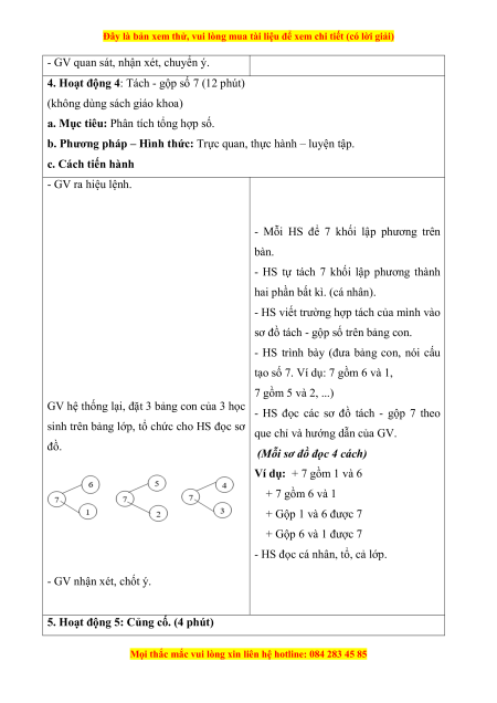 4. Hoạt động 4: Tách - gộp số 7 (12 phút)
