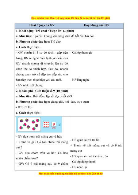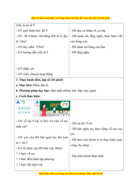a. Mục tiêu: Biết đếm, lập số, đọc, viết số 9