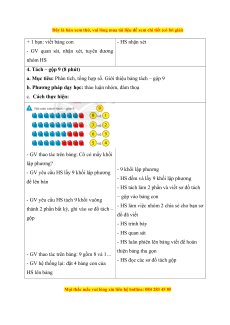 - GV đưa chấm tròn và hỏi: Có bao - HS quan sát: có 9 chấm tròn nhiêu chấm tròn? - Cả lớp đồng thanh