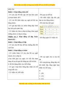Bước 2: Hoạt đ ng nhóm ộ đôi - GV yêu c u ầ HS b t ắ c p ặ v i ớ b n ạ bên c nh ạ - HS quan sát đ bài ề và hoàn thành BT1 - HS th o ả lu n ậ c p ặ đôi, ghi - GV cho HS th o ả lu n ậ suy nghĩ trả l i ờ vào đáp án vào b ng ả nhóm. b ng ả nhóm. - HS trình bày k t ế quả - GV g i ọ đ i ạ hi n ệ các nhóm đ ng ứ d y ậ trình bày k t ế qu t ả rư c l ớ p. ớ - GV nh n ậ xét, đ a